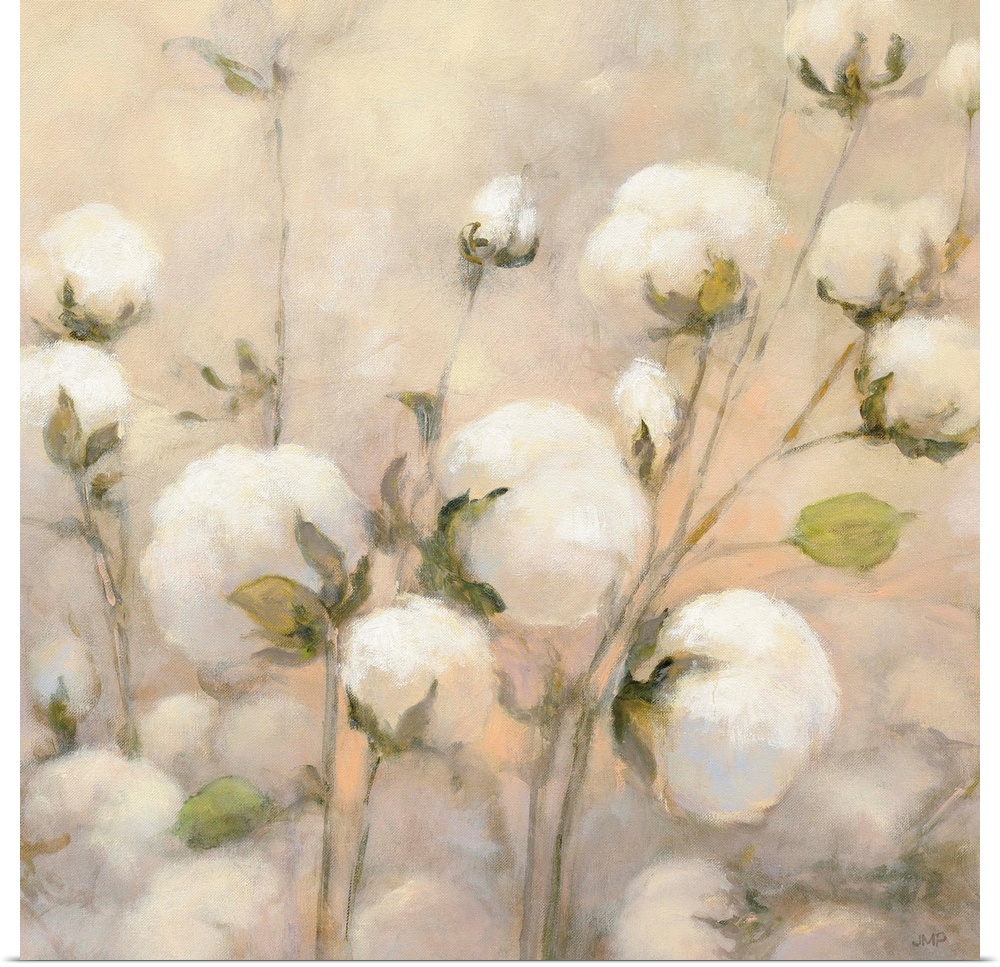 <p>Square painting of wild cotton with a warm background.</p>