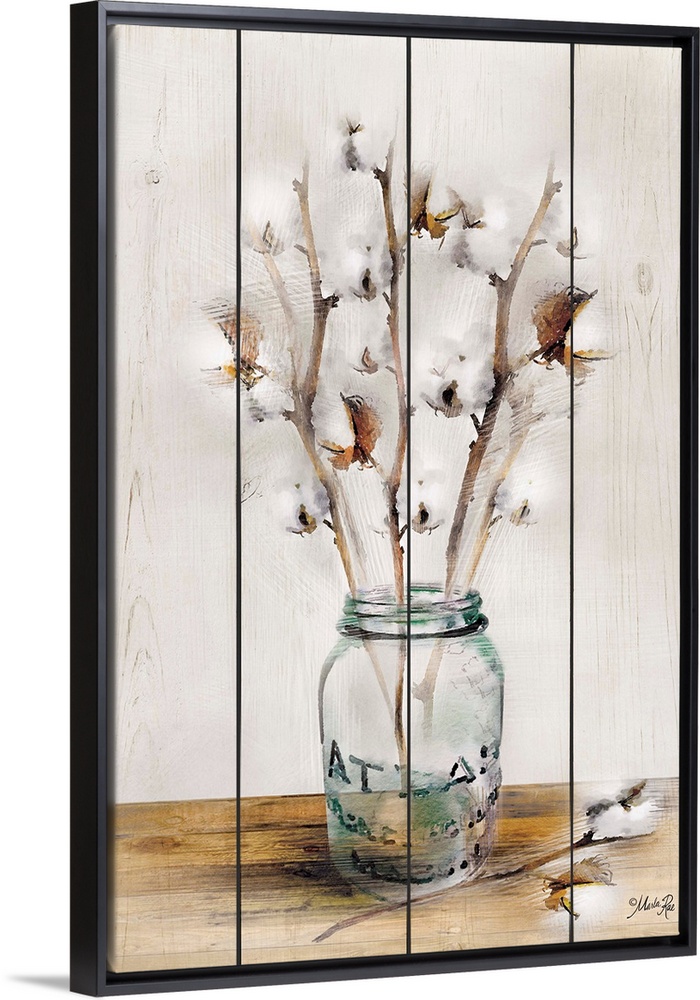<p>Artwork of cotton buds arranged in a glass jar on a wooden board background.</p>