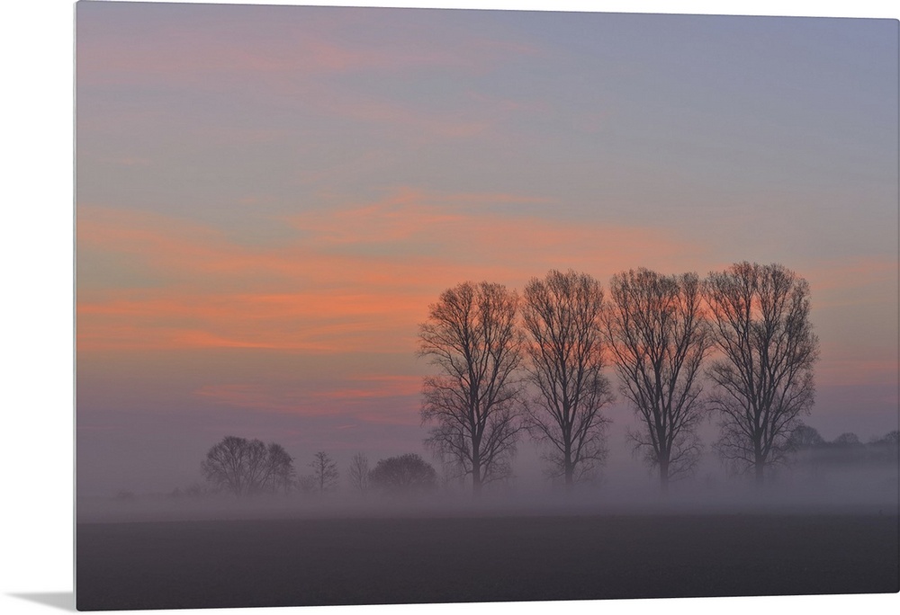 <p>Cottonwood Tree Row at Sunrise, Harpertshausen, Dieburg, Darmstadt-Dieburg-District, Hesse, Germany</p>