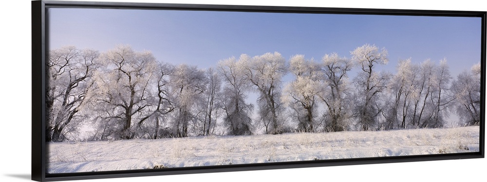 <p>Cottonwood trees covered with snow, Lower Klamath Lake, Siskiyou County, California, USA</p>
