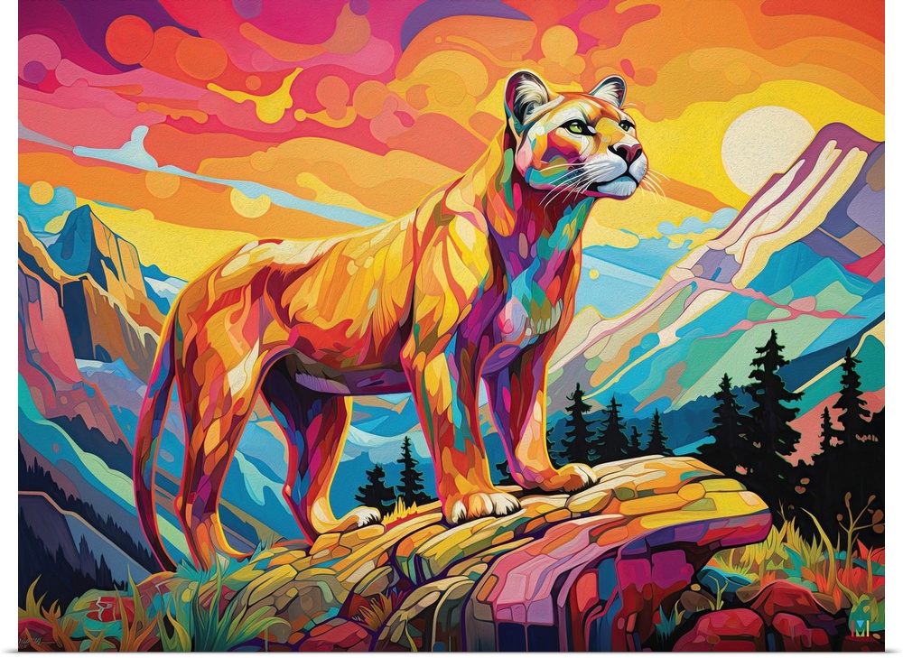 Art Graphic Art Mountains Multicolor Wall Art Michael David Ward Wildlife Cougar