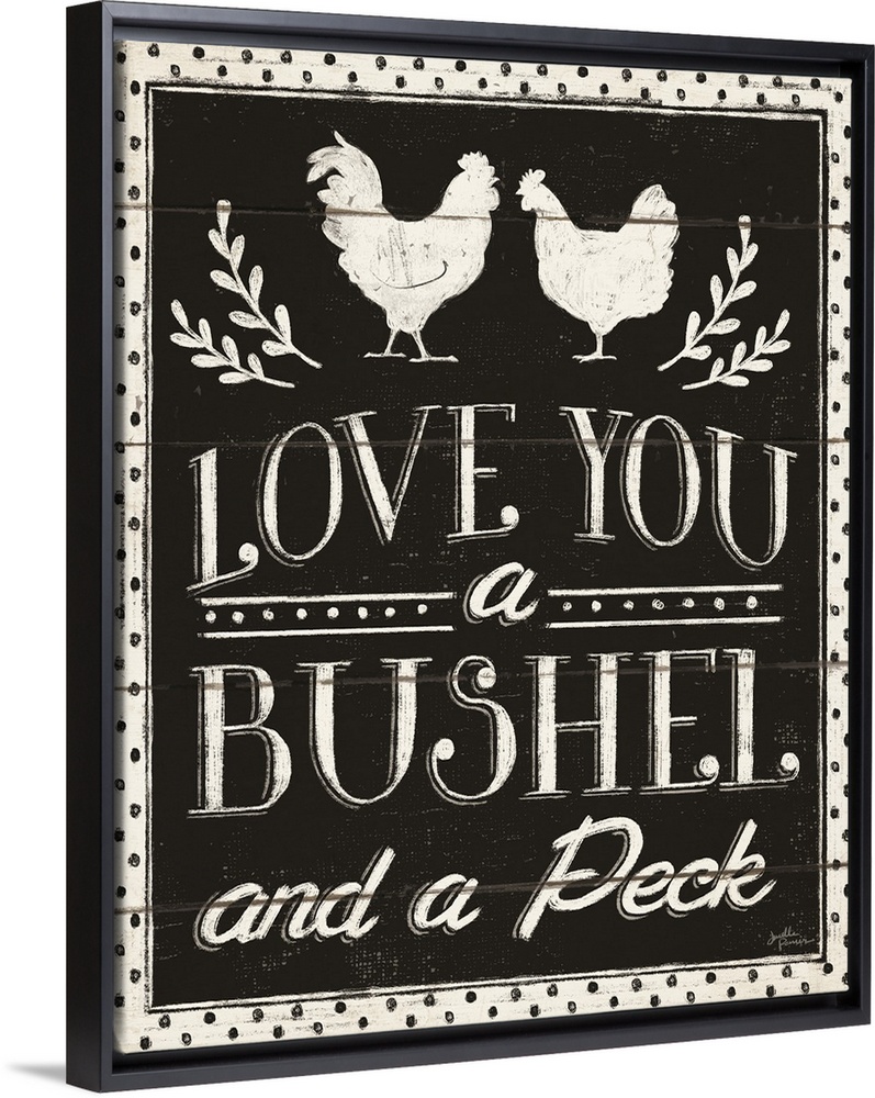 <p>Decorative country art featuring the words, 'Love You a bushel and a peck'.</p>