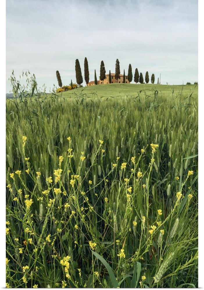 <p>Countryhouse near Pienza during a cloudy sunset in spring, Val d'Orcia, Tuscany, Italy</p>