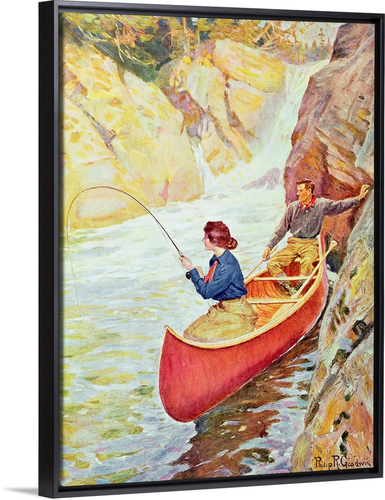 Art Philip Russell Goodwin Fishing Kayaking and Canoeing Vintage Art