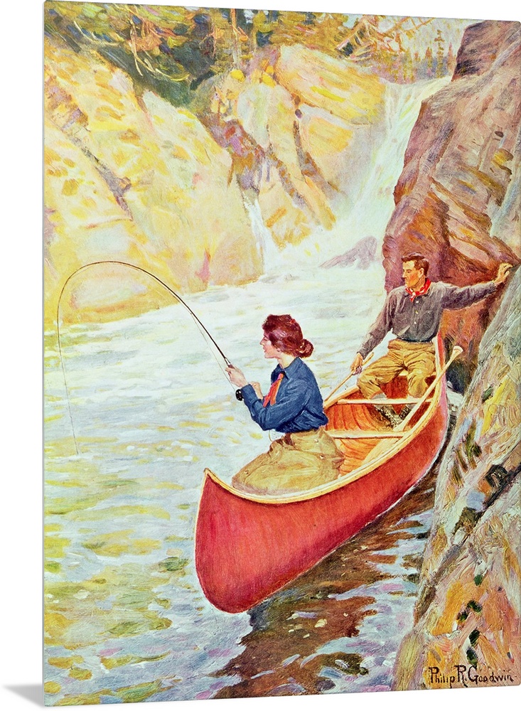 Art Philip Russell Goodwin Fishing Kayaking and Canoeing Vintage Art
