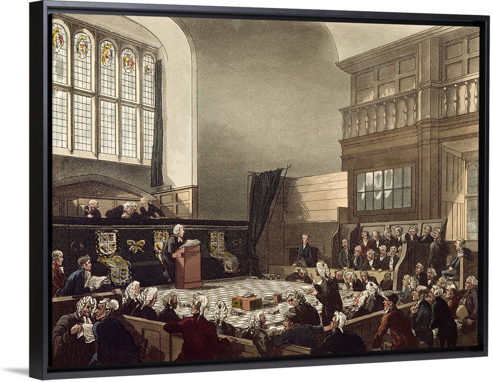 <p>Court of Exchequer, Westminster Hall, from 'The Microcosm of London', engraved by J. C. Stadler , pub. by R. Ackermann 1808</p>