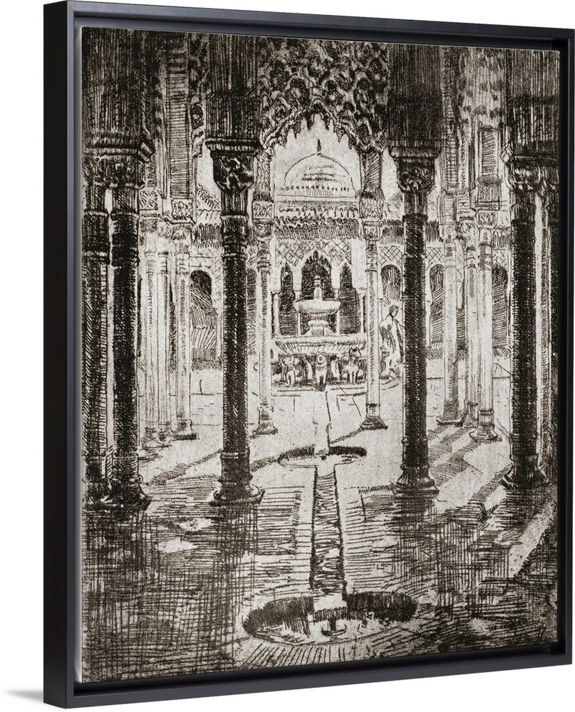 <p>Court Of Lions, Alhambra Palace, Granada, Spain. Etching By Ada C. Williamson From The Book "Tawny Spain," Published 1927.</p>