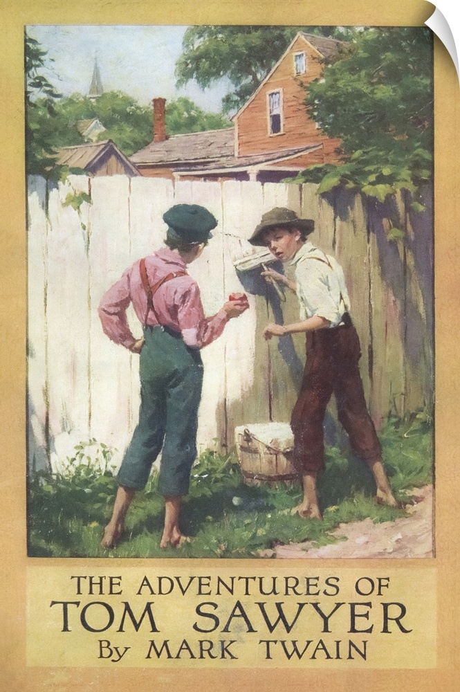<p>Cover illustration for the Harper & Brothers 1910 edition of Mark Twain's The Adventures of Tom Sawyer by American artist Worth Brehm.</p>