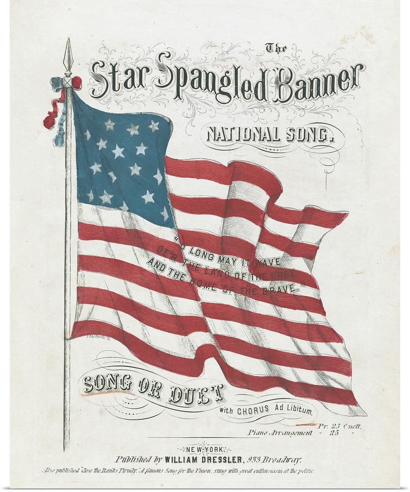 <p>Cover of a musical score of the US national anthem by Stackpole. Published by William Dressler in New York, 1861. Hand colored engraving, private collection.</p>