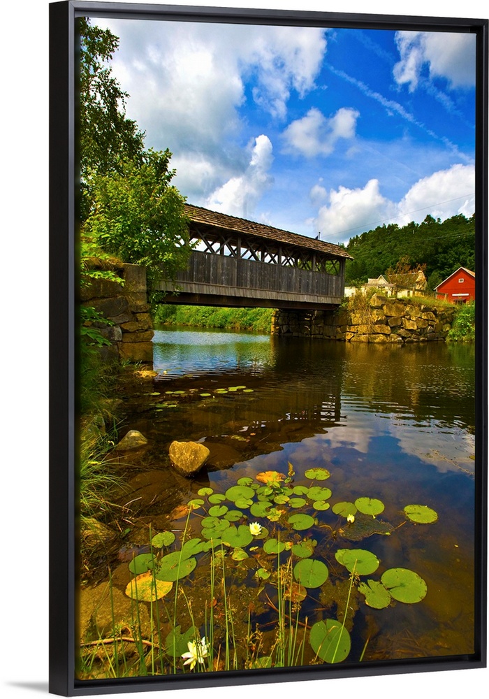 Covered Bridge Water Lily Landscapes Countryside River, Creek and Stream Clouds Trees Photography United States Vermont