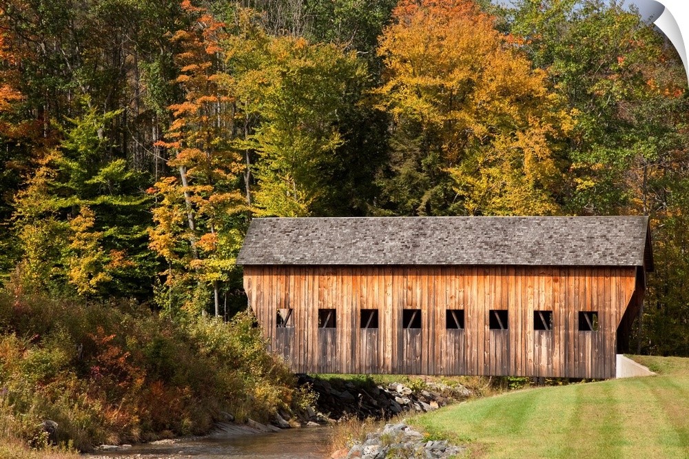 <p>Covered bridge in Vermont during autumn, Hammondsville, Vermont, United States of America.</p>