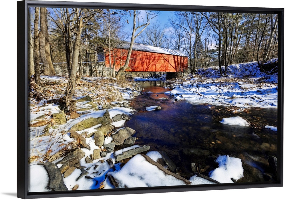 <p>Low Angle View of the Cabin Run Covered Bridge During Winter, Bucks County, Pennsylvania.</p>