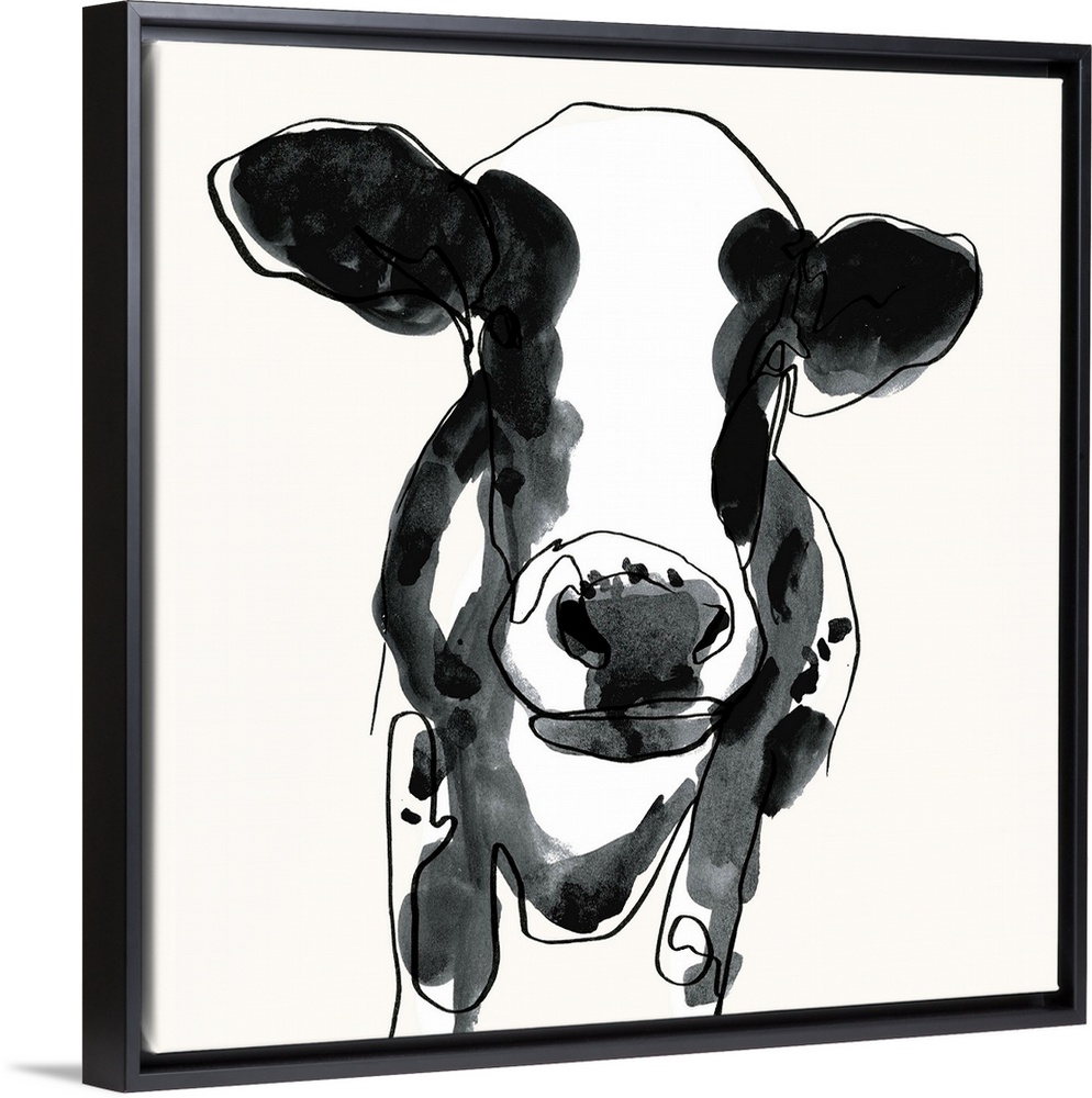 <p>Contemporary watercolor portrait of a cow in black and white.</p>