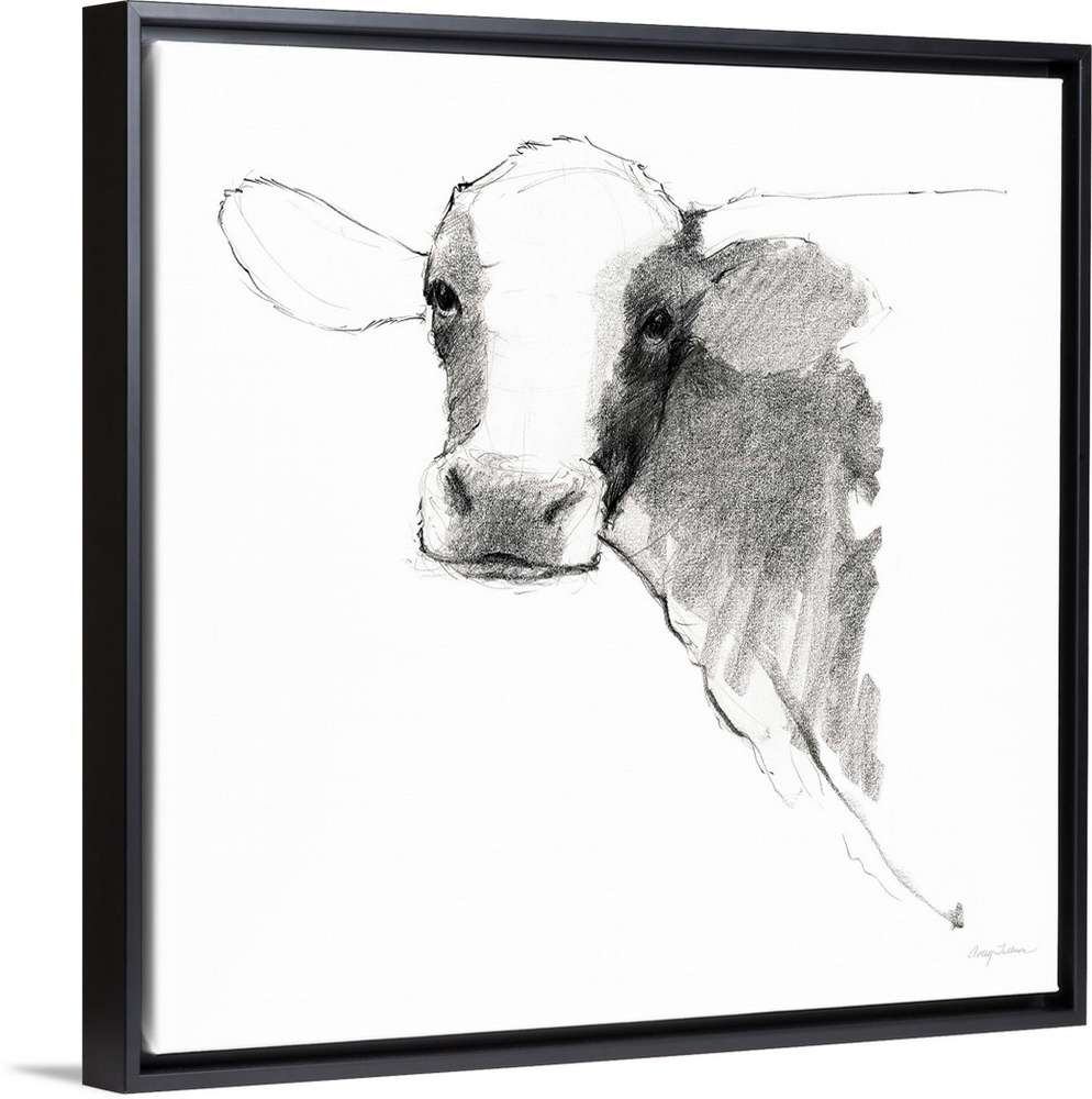 <p>Black and white illustration of a cow on a solid white, square background.</p>