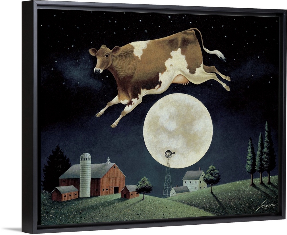 Art Contemporary Art Wildlife Lowell Herrero Landscapes Barn Moon Latin Art Painting Surrealism Wildlife Cow