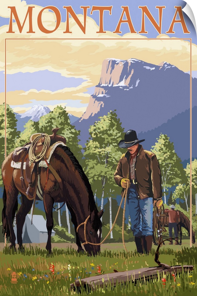 Art Cowboys Lantern Press Montana Travel Posters Retro Travel Posters