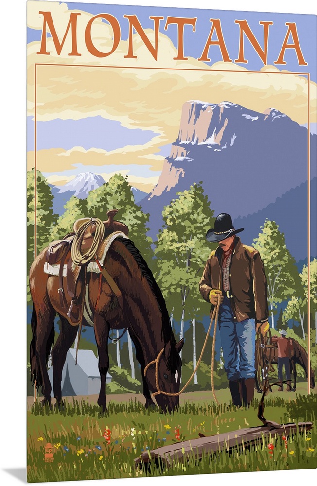 Art Cowboys Lantern Press Montana Travel Posters Retro Travel Posters