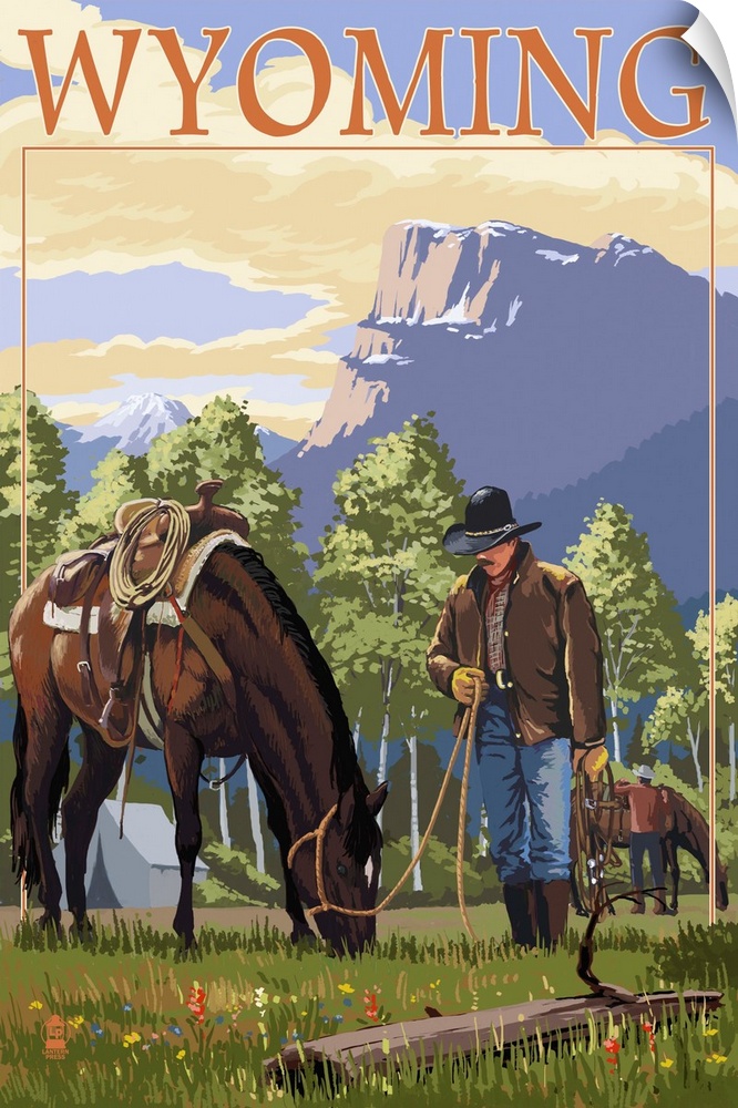 Art Cowboys Lantern Press Wyoming Travel Posters Retro Travel Posters Wildlife Horse