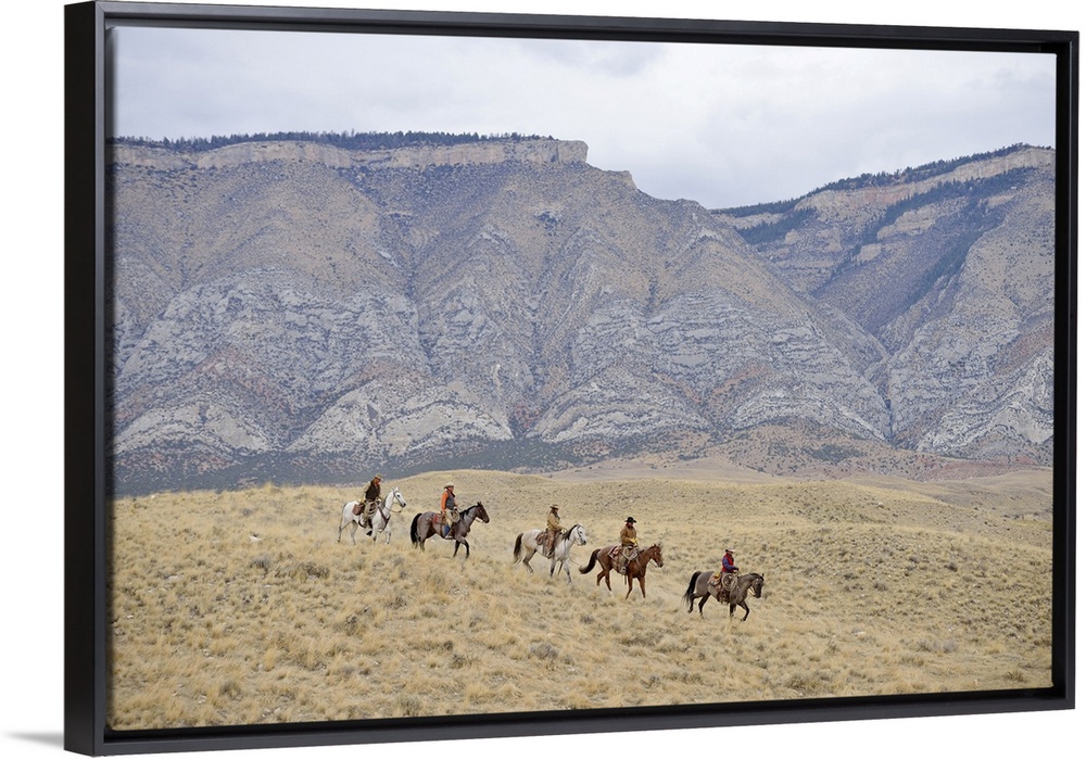 <p>Cowboys and Cowgirls riding horse in wilderness, Rocky Mountain, Wyoming</p>