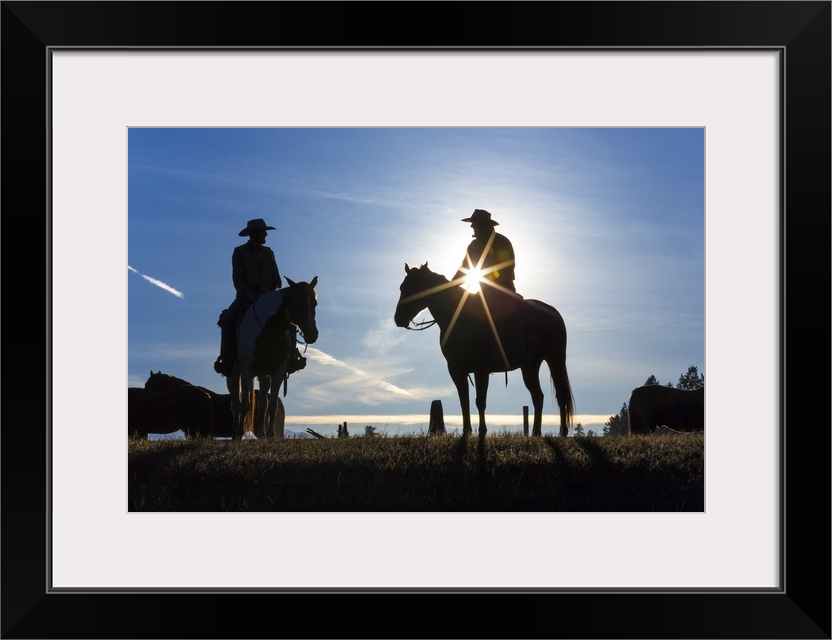 <p>Cowboys on horses, sunrise, British Colombia, Canada.</p>