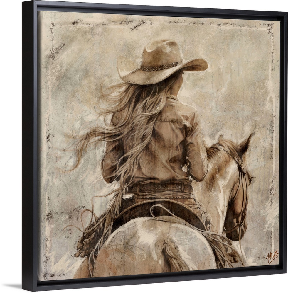 Art Beige Contemporary Art Painting People Cowboys Wildlife Horse Marta Wiley
