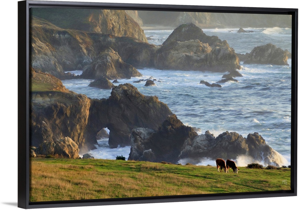 <p>Two cows graze in a field in Big Sur with spectacular rock formations and the beautifully lit ocean behind them. Adding a unique artistic dimension to the realism of photography, Michael Lynberg uses some of the same digital brushes and tools that matte painters and concept artists use in today's movie studios.</p>