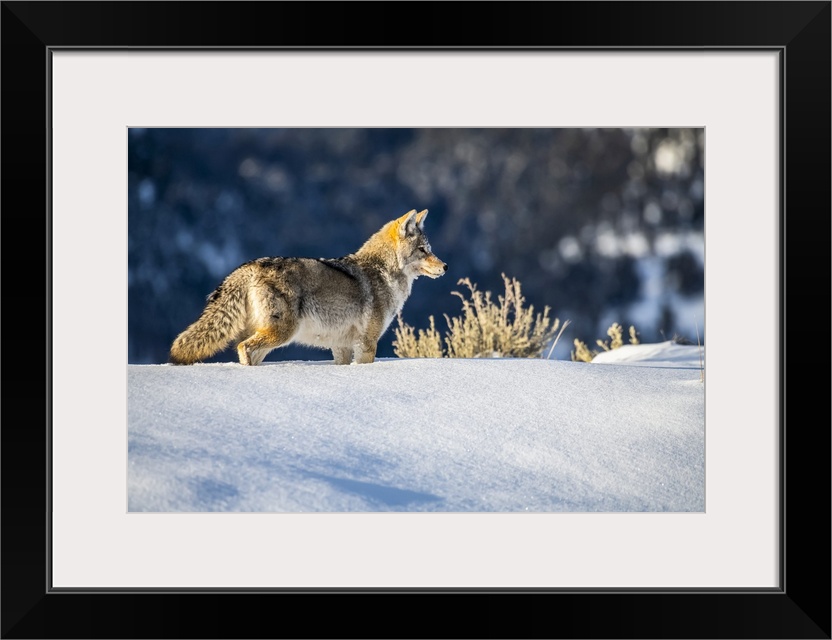<p>Coyote (Canis latrans) standing in deep snow in Yellowstone National Park; Wyoming, United States of America.</p>