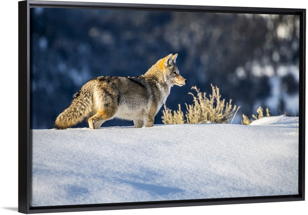 <p>Coyote (Canis latrans) standing in deep snow in Yellowstone National Park; Wyoming, United States of America.</p>