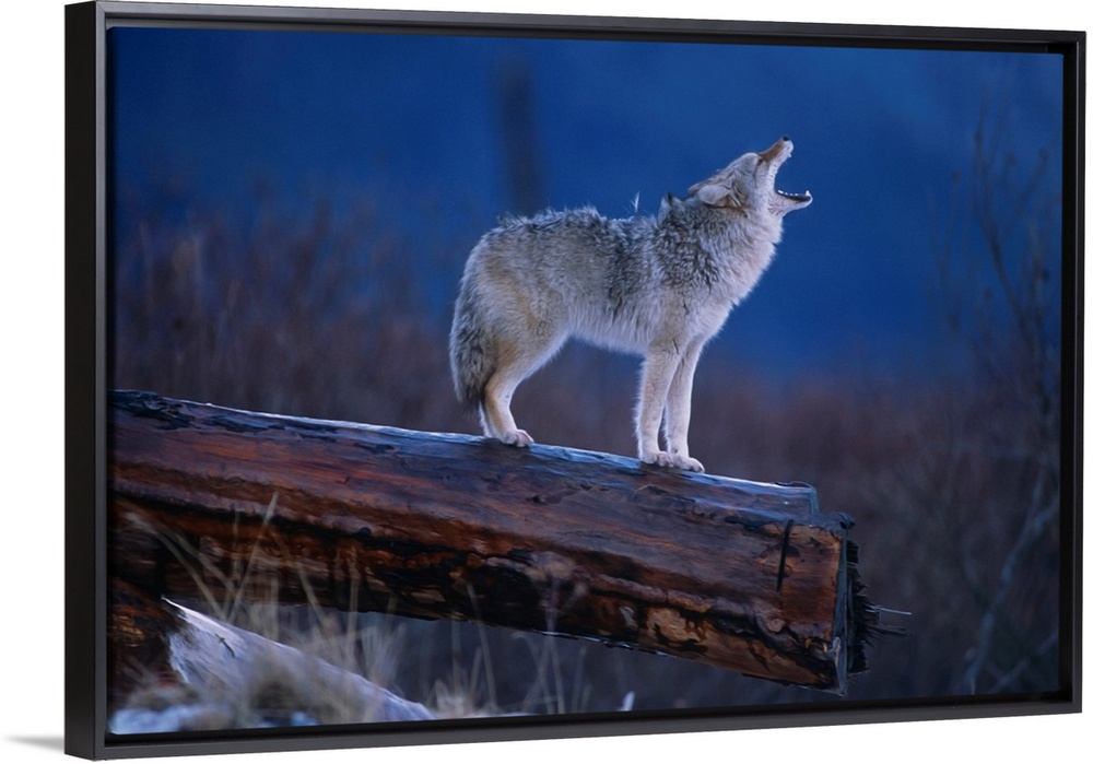 <p>Coyote Standing On Log, Alaska Wildlife Conservation Center</p>