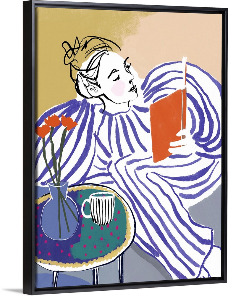 Art Bohemian Contemporary Art Cats And Dotz Florals Graphic Art People Figurative Reading and Literature