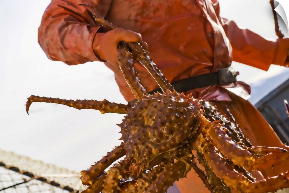 <p>Crab Fisherman Carries A Brown Crab To The Hold Of The F/V Morgan Anne During The Commercial Brown Crab Fishing Season In Icy Straight In Southeast Alaska</p>