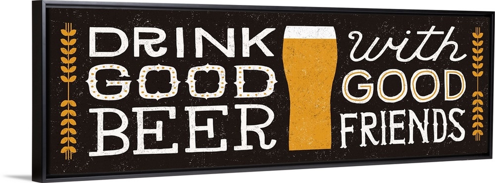<p>Retro style sign reading "Drink good beer with good friends" with a glass of beer in the center.</p>