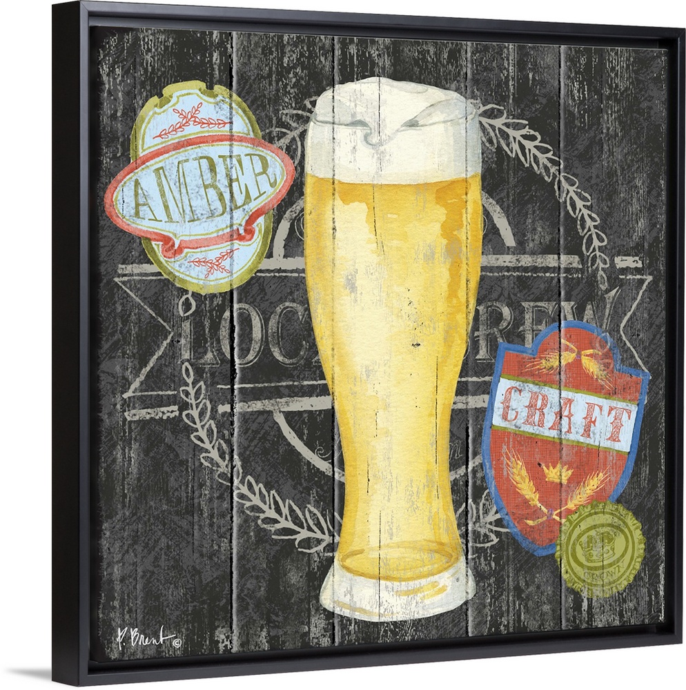 <p>Contemporary decorative artwork of a craft beer in a glass on a textured panel background.</p>