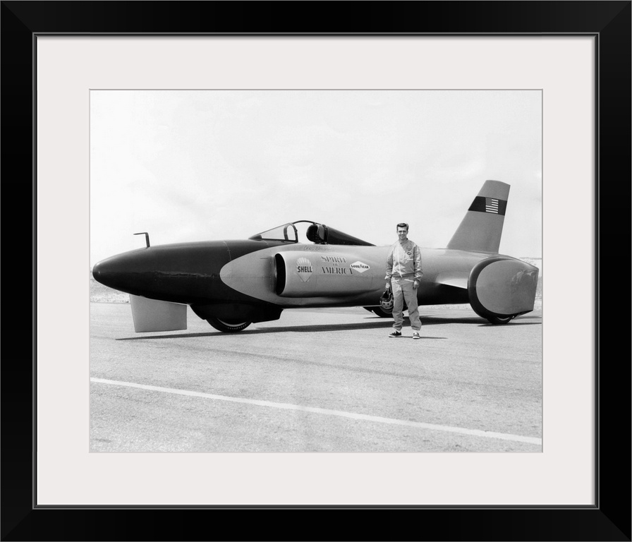 <p>Craig Breedlove stands beside his jet car 'Spirit of America' on the Bonneville Salt Flats in Utah. July 25, 1963. Breedlove set a new land speed record of reached 407.45 mph on Aug. 5, 1963.</p>