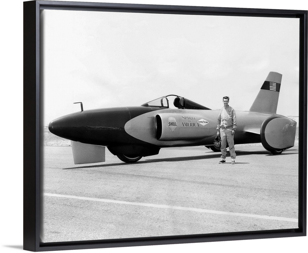 <p>Craig Breedlove stands beside his jet car 'Spirit of America' on the Bonneville Salt Flats in Utah. July 25, 1963. Breedlove set a new land speed record of reached 407.45 mph on Aug. 5, 1963.</p>