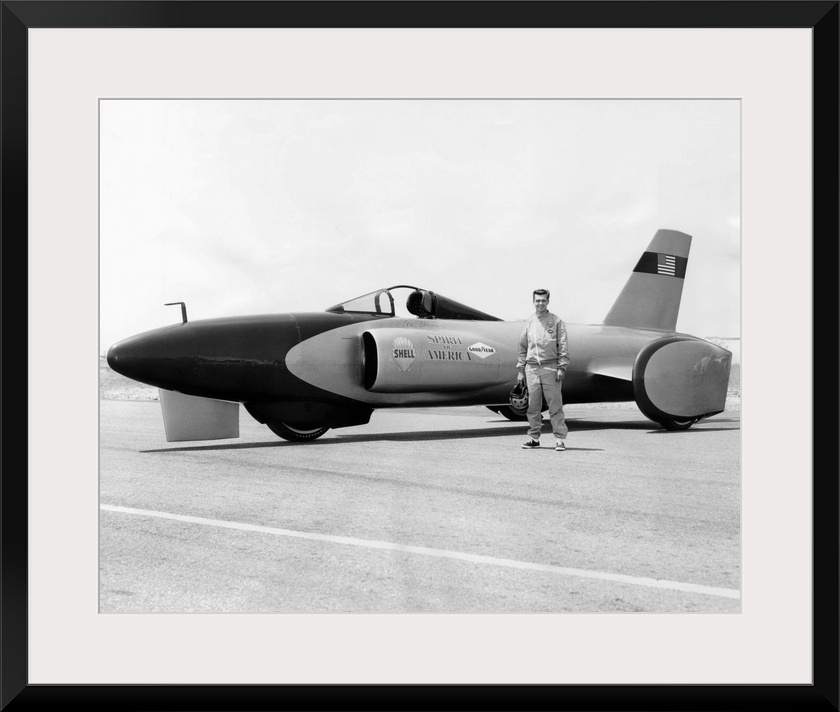 <p>Craig Breedlove stands beside his jet car 'Spirit of America' on the Bonneville Salt Flats in Utah. July 25, 1963. Breedlove set a new land speed record of reached 407.45 mph on Aug. 5, 1963.</p>