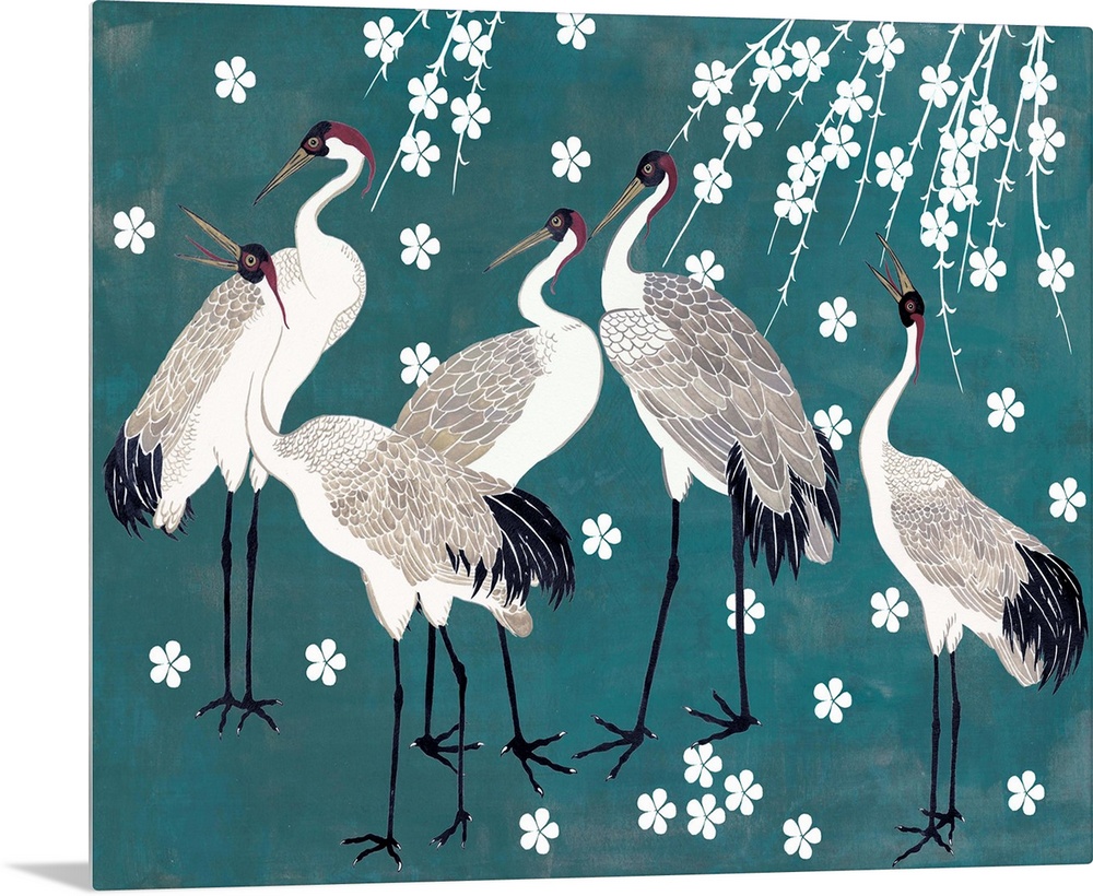 Art Transitional Asian Art Birds and Animals Blue Wall Art Decorative Art Florals Painting Melissa Wang Wildlife Bird Crane