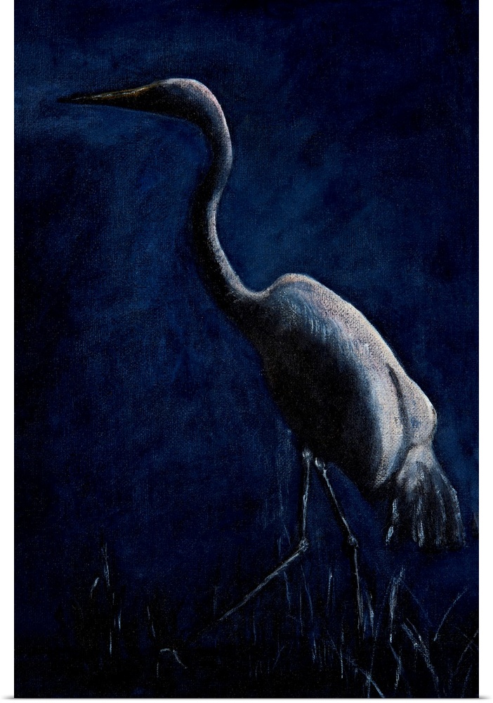 Art Blue Wall Art Contemporary Art Dale Hefer Painting Wildlife Bird Crane Heron and Egret