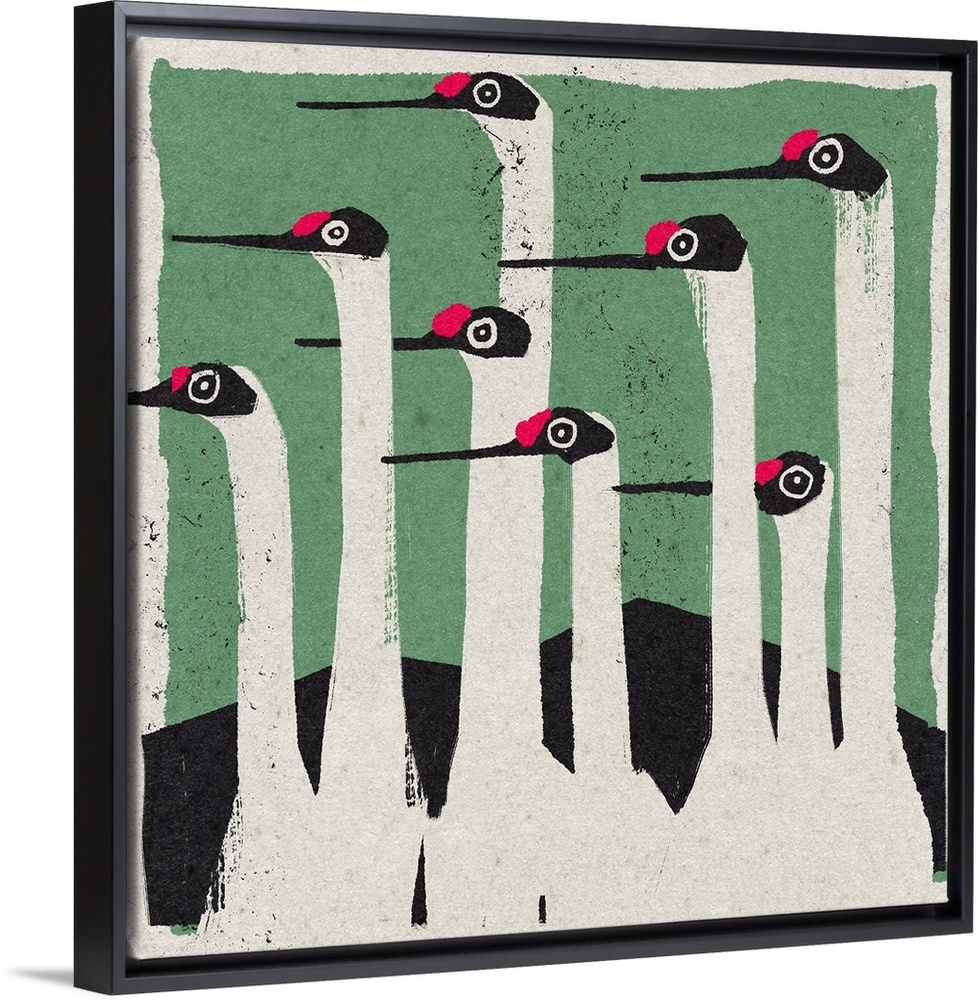 Art Contemporary and Modern Contemporary Art Graphic Art Green Wall Art Wildlife Bird Crane