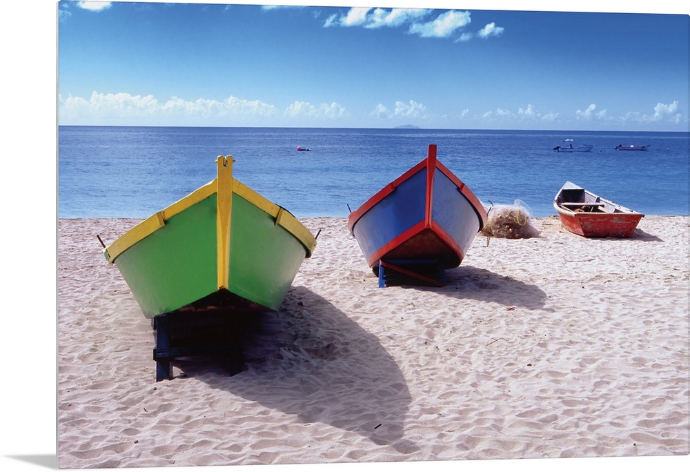 <p>Frontal view of fishing boats on Crash Boat beach, Puerto Rico.</p>