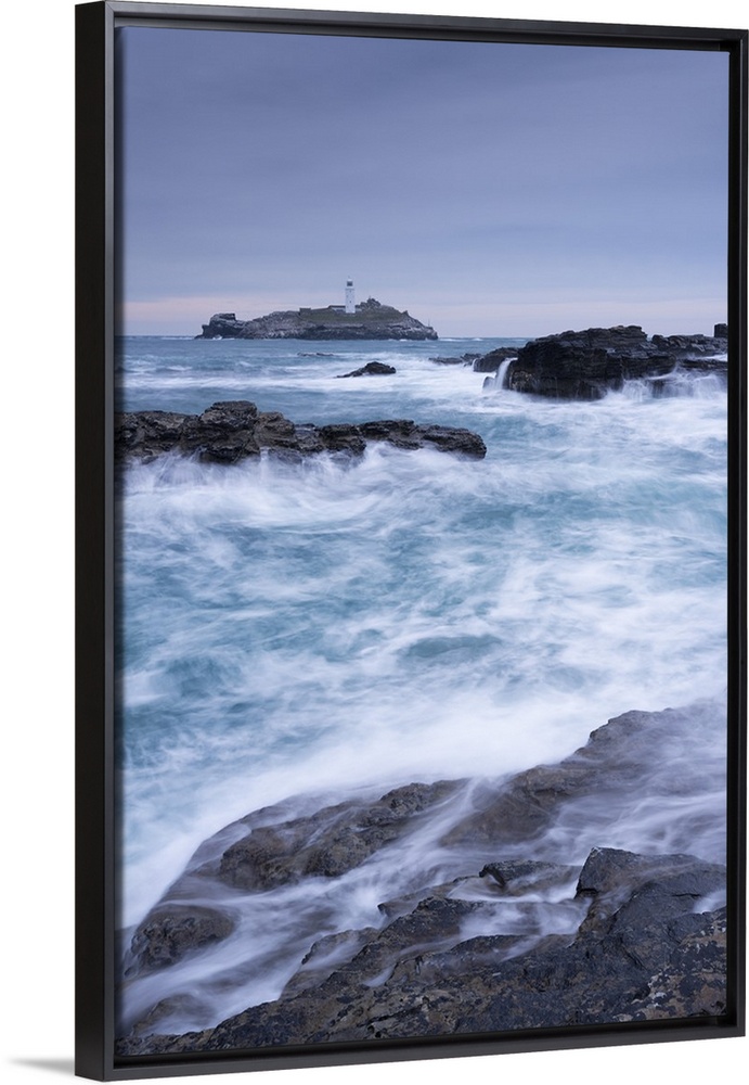 <p>Crashing Atlantic waves near Godrevy Lighthouse, Cornwall, England. Winter (February)</p>