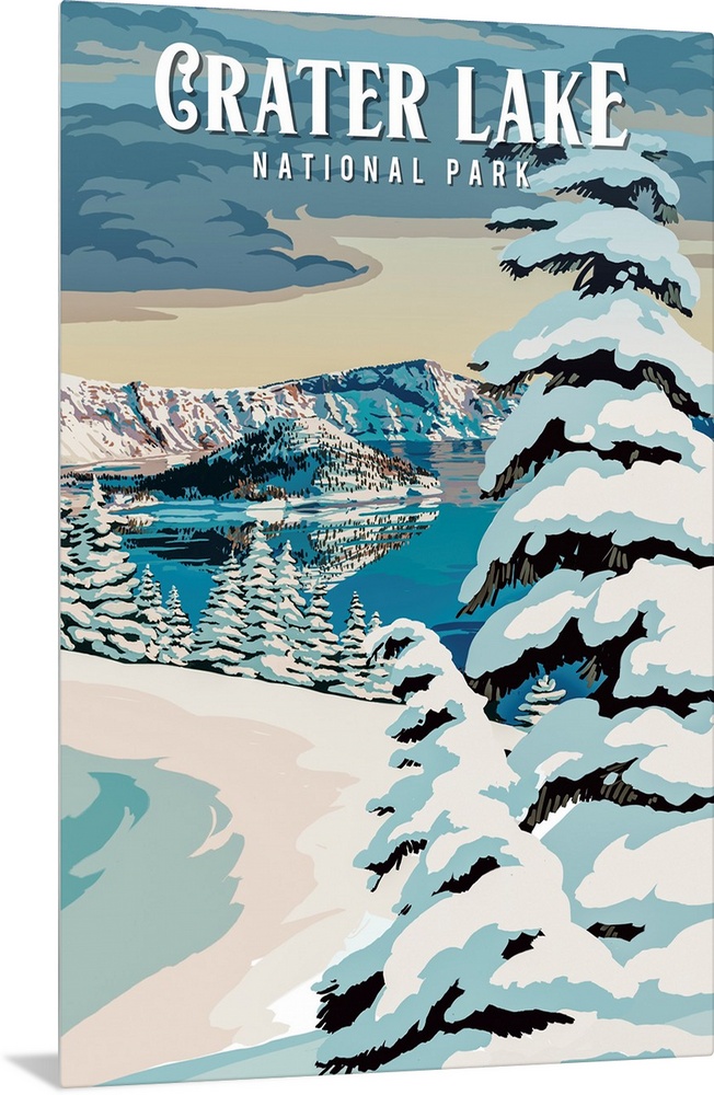 Art Four Seasons Winter Lake Lantern Press United States Crater Lake National Park