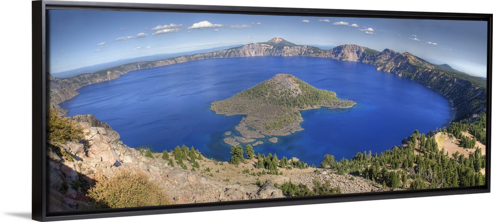 <p>Crater Lake National Park, Wizard Island and Crater Lake, panorama, view from The Watchman area, Oregon.</p>