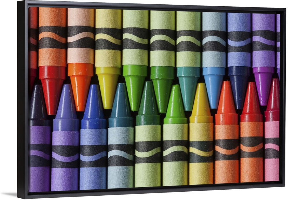 <p>Crayons arranged in colors of a rainbow</p>