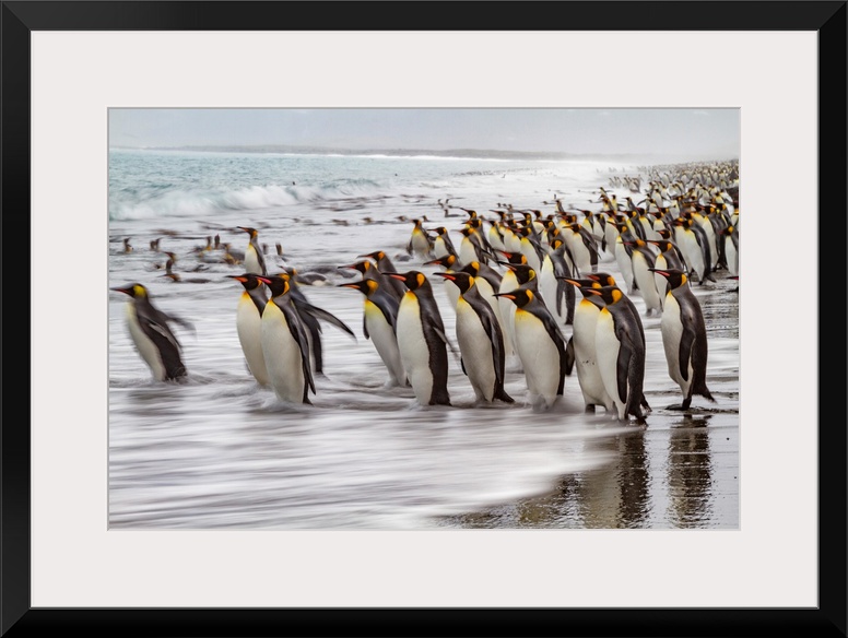 <p>Creative motion blur image of adult king penguins (Aptenodytes patagonicus) returning to the sea on South Georgia, Polar Regions</p>