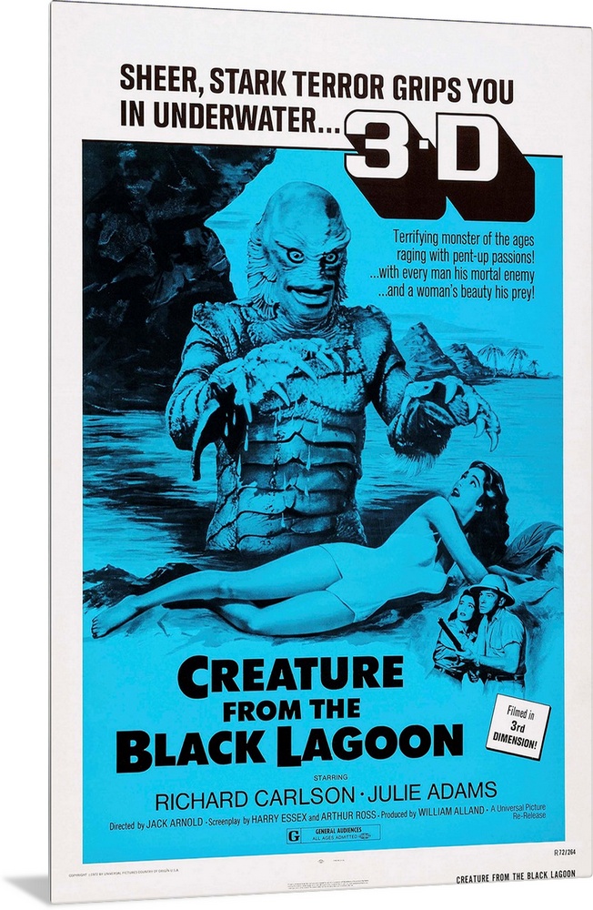 <p>CREATURE FROM THE BLACK LAGOON, l-r: Julie Adams, Richard Carlson on poster art, 1954.</p>