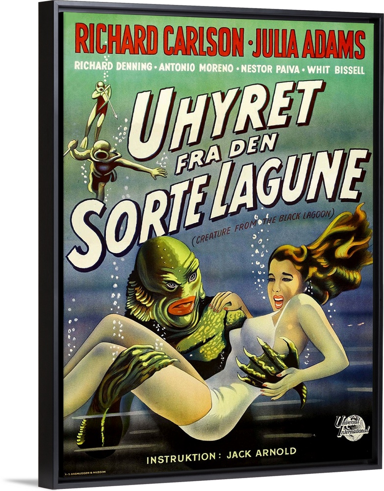 <p>CREATURE FROM THE BLACK LAGOON, (aka UHYRET FRA DEN SORTE LAGUNE), Julie Adams on Danish poster art, 1954</p>
