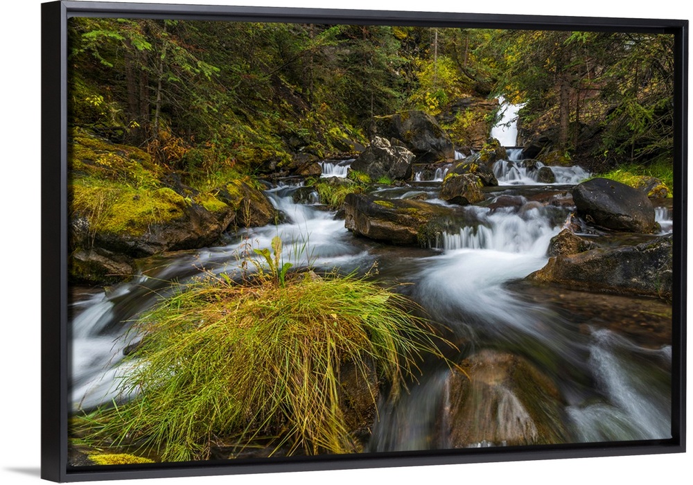 <p>Creek cascading over rocks and moss, Canmore Creek, Canmore, Alberta, Canada</p>