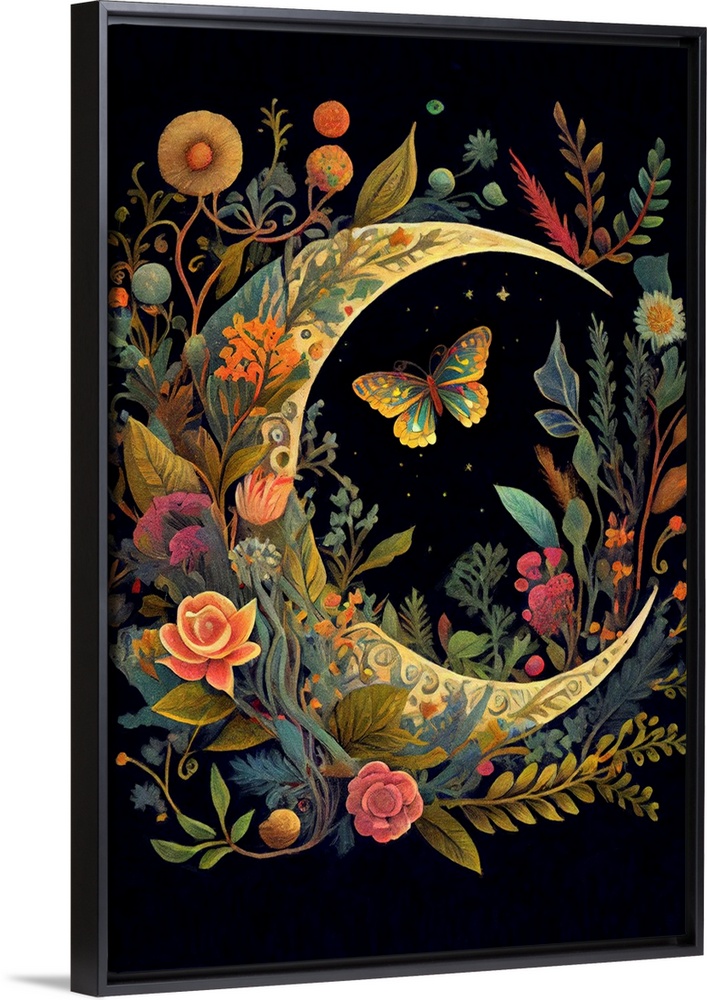 <p>This image by JK Stewart for Duirwaigh Studios of a botanical moon with a butterfly.</p>