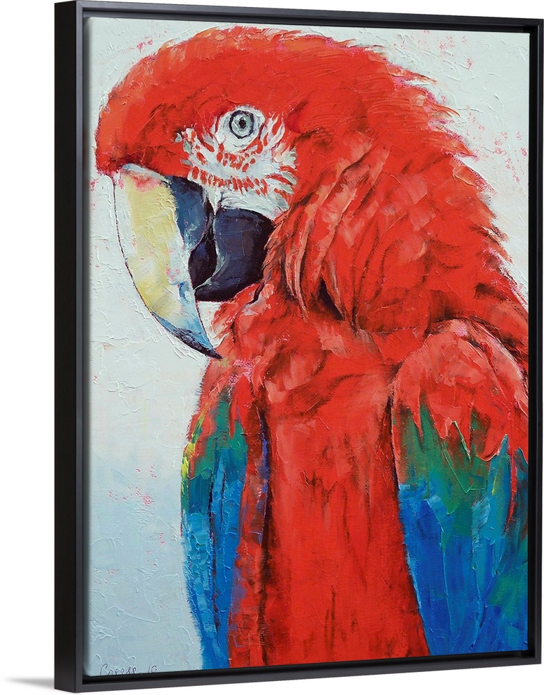 Art Contemporary Art Michael Creese Painting Red Wall Art Wildlife Bird Parrot Tropical Birds